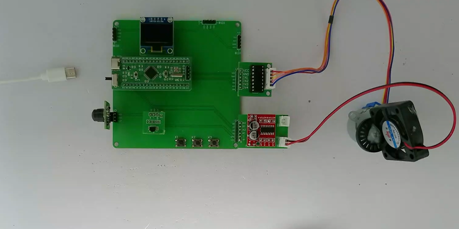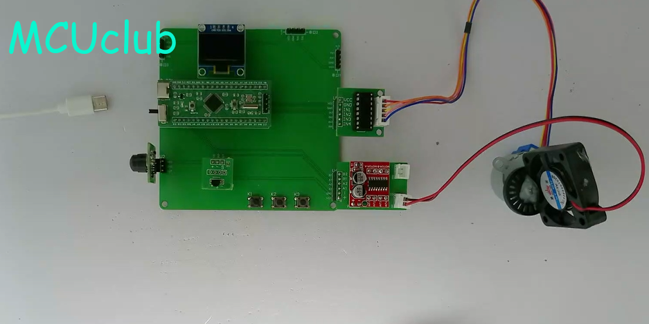 4、通过步进电机带动风扇,可模拟自动摇头,按键可以控制启停