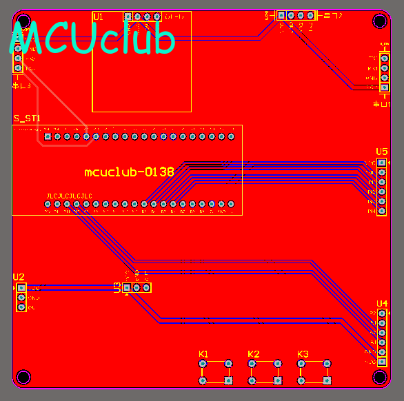 注意:PCB图中间有一个项目编号,隐藏在单片机底座下,插入单片机后不会看到。如果想截没有项目编号的PCB图,可在PCB源文件中点击删除。另外,如果想在实物PCB板上加自己的信息(比如日期、学号、姓名等),可联系客服。