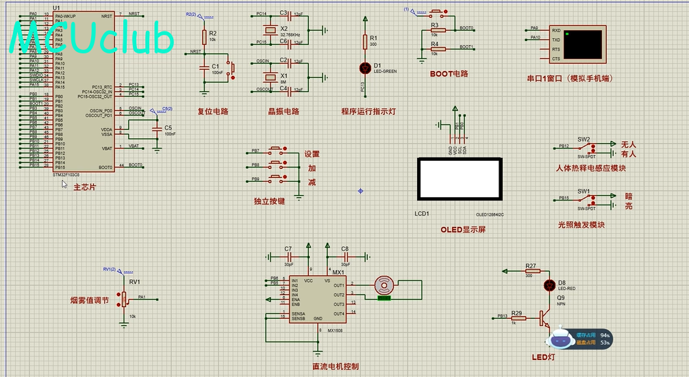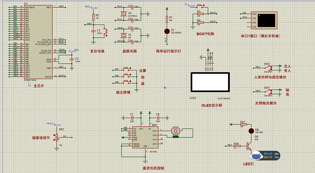 注意:部分实物元器件仿真中没有,仿真中会用其他工作原理相似的元件代替,这样可能导致实物程序和仿真程序不一样
