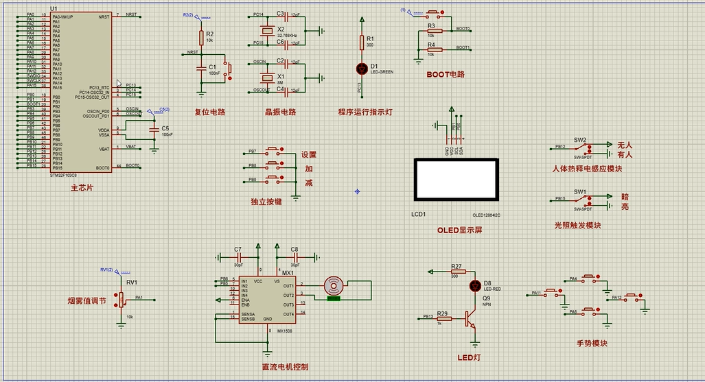 注意:部分实物元器件仿真中没有,仿真中会用其他工作原理相似的元件代替,这样可能导致实物程序和仿真程序不一样