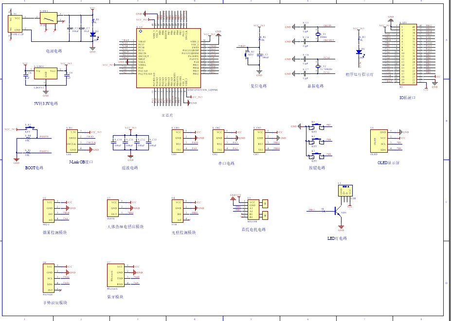 PCB图是由原理图导出,封装很大一部分都是作者自己绘制,不提供封装库,只提供连接好的源文件,可以直接在嘉立创进行打板。两层板,上下覆铜接地。