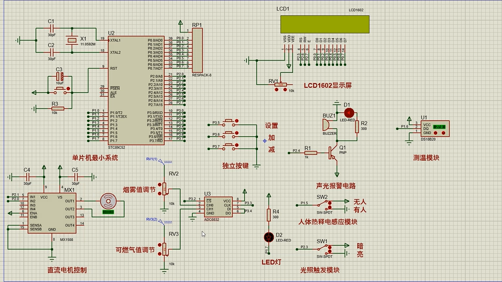 注意:部分实物元器件仿真中没有,仿真中会用其他工作原理相似的元件代替,这样可能导致实物程序和仿真程序不一样