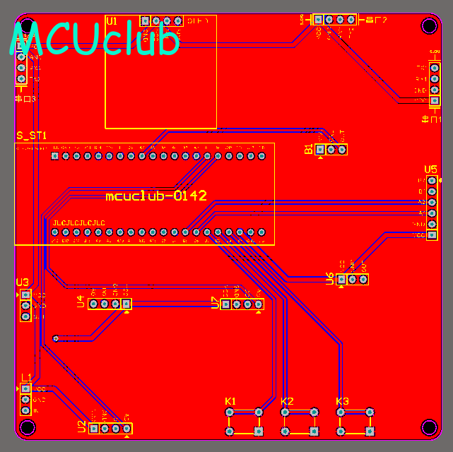 注意:PCB图中间有一个项目编号,隐藏在单片机底座下,插入单片机后不会看到。如果想截没有项目编号的PCB图,可在PCB源文件中点击删除。另外,如果想在实物PCB板上加自己的信息(比如日期、学号、姓名等),可联系客服。