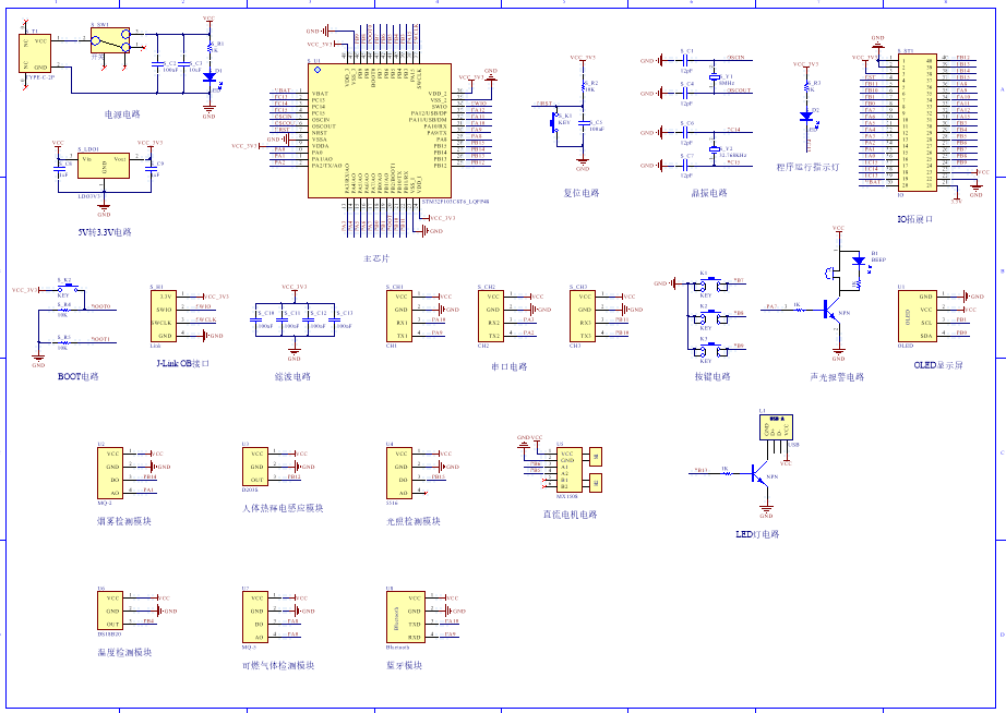 PCB图是由原理图导出,封装很大一部分都是作者自己绘制,不提供封装库,只提供连接好的源文件,可以直接在嘉立创进行打板。两层板,上下覆铜接地。
