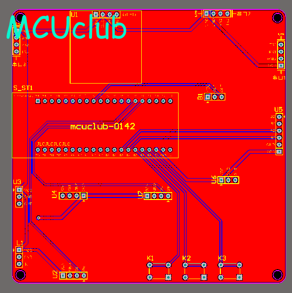 注意:PCB图中间有一个项目编号,隐藏在单片机底座下,插入单片机后不会看到。如果想截没有项目编号的PCB图,可在PCB源文件中点击删除。另外,如果想在实物PCB板上加自己的信息(比如日期、学号、姓名等),可联系客服。
