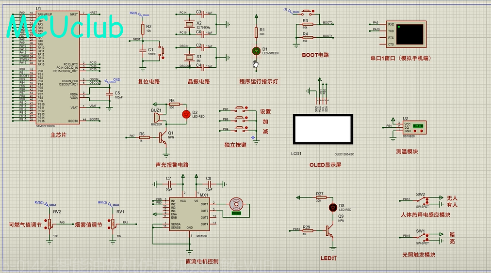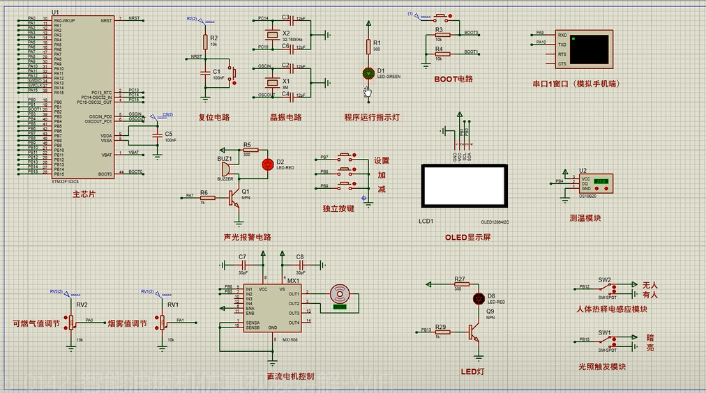 注意:部分实物元器件仿真中没有,仿真中会用其他工作原理相似的元件代替,这样可能导致实物程序和仿真程序不一样