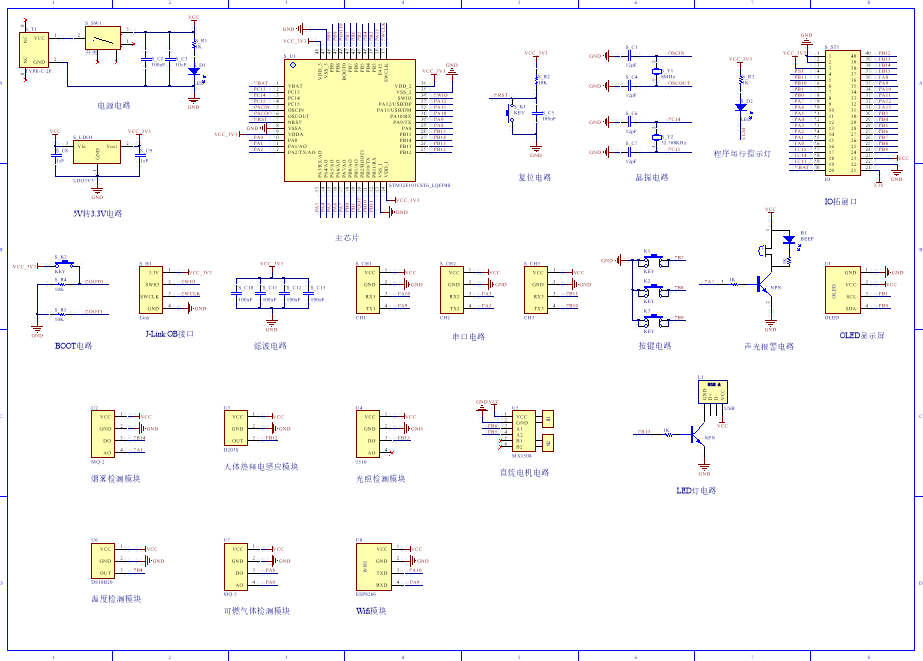 PCB图是由原理图导出,封装很大一部分都是作者自己绘制,不提供封装库,只提供连接好的源文件,可以直接在嘉立创进行打板。两层板,上下覆铜接地。