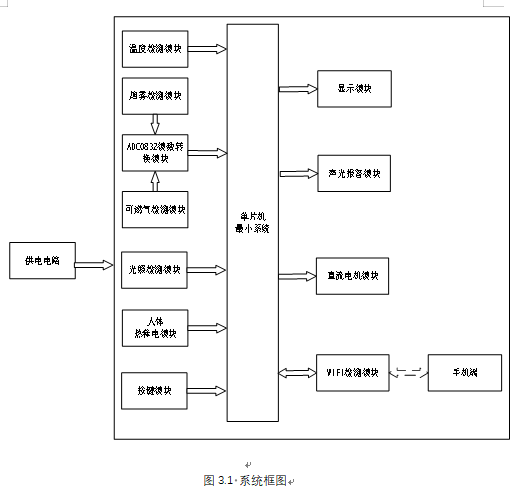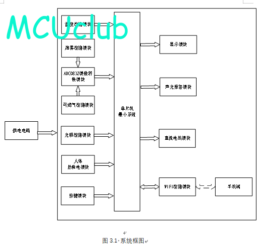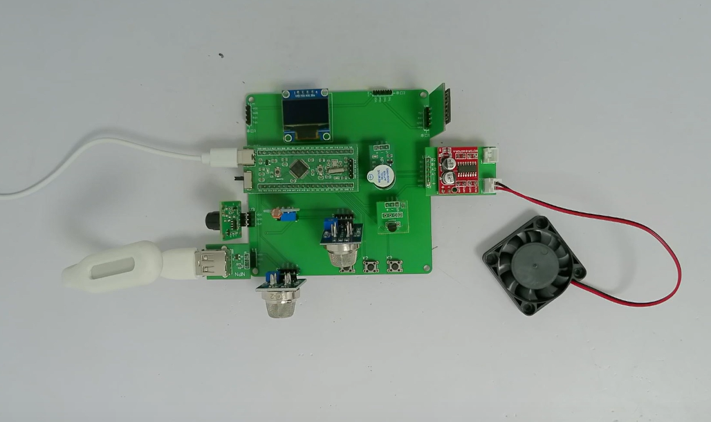 1、通过MQ-2烟雾传感器检测厨房内烟雾浓度,若烟雾浓度小于设定最小阈值,油烟机风扇不工作;若烟雾浓度在设定上下限阈值之间,风扇低速转动;若烟雾浓度在大于设定最大阈值,风扇高速转动