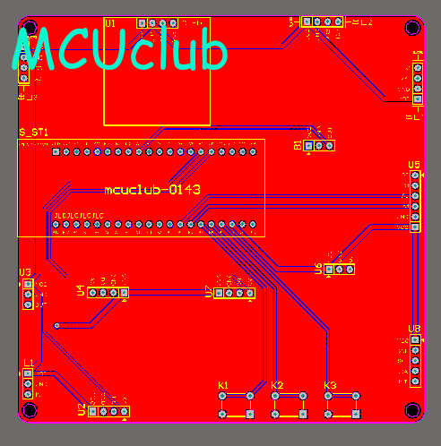 注意:PCB图中间有一个项目编号,隐藏在单片机底座下,插入单片机后不会看到。如果想截没有项目编号的PCB图,可在PCB源文件中点击删除。另外,如果想在实物PCB板上加自己的信息(比如日期、学号、姓名等),可联系客服。