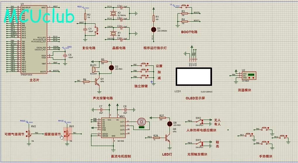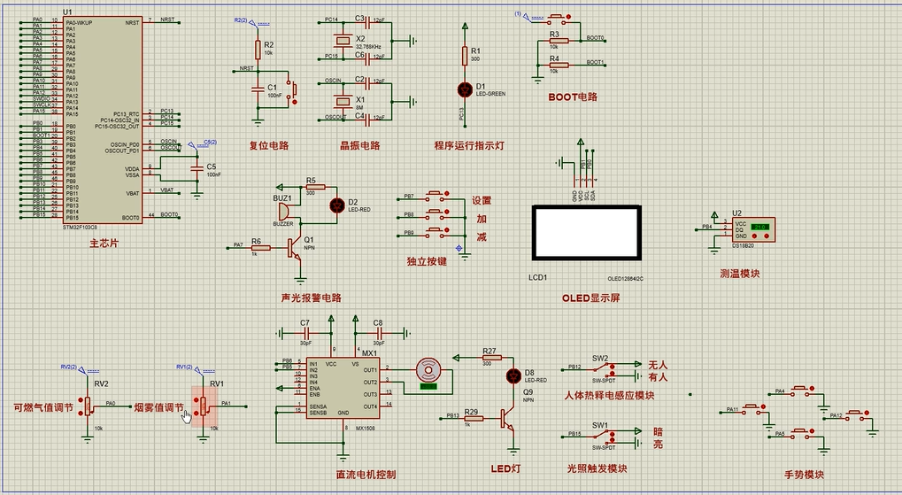 注意:部分实物元器件仿真中没有,仿真中会用其他工作原理相似的元件代替,这样可能导致实物程序和仿真程序不一样