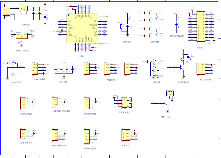 PCB图是由原理图导出,封装很大一部分都是作者自己绘制,不提供封装库,只提供连接好的源文件,可以直接在嘉立创进行打板。两层板,上下覆铜接地。