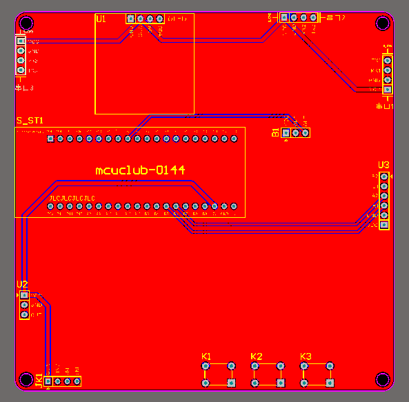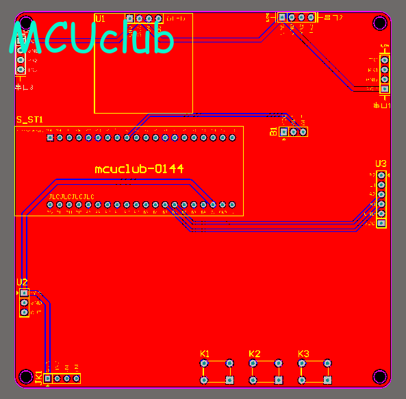 注意:PCB图中间有一个项目编号,隐藏在单片机底座下,插入单片机后不会看到。如果想截没有项目编号的PCB图,可在PCB源文件中点击删除。另外,如果想在实物PCB板上加自己的信息(比如日期、学号、姓名等),可联系客服。