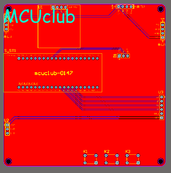 注意:PCB图中间有一个项目编号,隐藏在单片机底座下,插入单片机后不会看到。如果想截没有项目编号的PCB图,可在PCB源文件中点击删除。另外,如果想在实物PCB板上加自己的信息(比如日期、学号、姓名等),可联系客服。