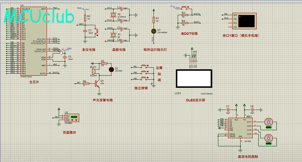 注意:部分实物元器件仿真中没有,仿真中会用其他工作原理相似的元件代替,这样可能导致实物程序和仿真程序不一样