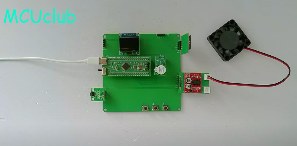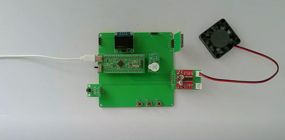 1、通过DS18B20检测温度值,当温度大于设置最小值,启动两个风扇低速转动,当温度大于设置最大值,启动两个风扇高速转动,当温度大于设置危险温度,进行声光报警