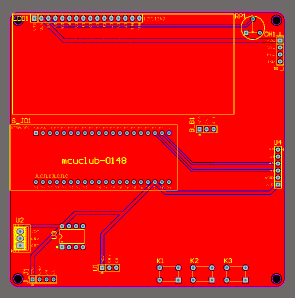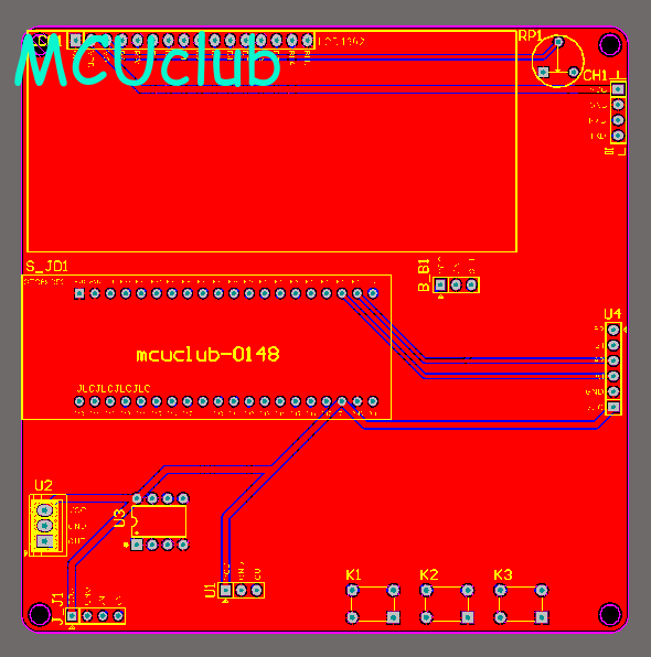 注意:PCB图中间有一个项目编号,隐藏在单片机底座下,插入单片机后不会看到。如果想截没有项目编号的PCB图,可在PCB源文件中点击删除。另外,如果想在实物PCB板上加自己的信息(比如日期、学号、姓名等),可联系客服。