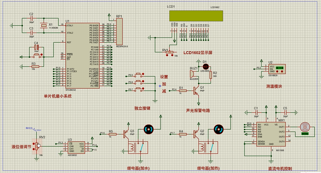 3、通过防水式DS18B20检测水温,只有水温大于设置最大值,才停止加热