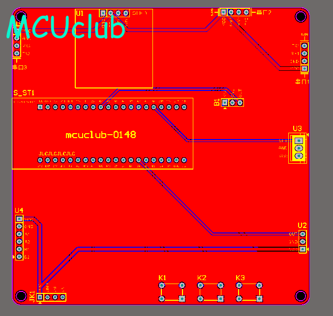 注意:PCB图中间有一个项目编号,隐藏在单片机底座下,插入单片机后不会看到。如果想截没有项目编号的PCB图,可在PCB源文件中点击删除。另外,如果想在实物PCB板上加自己的信息(比如日期、学号、姓名等),可联系客服。