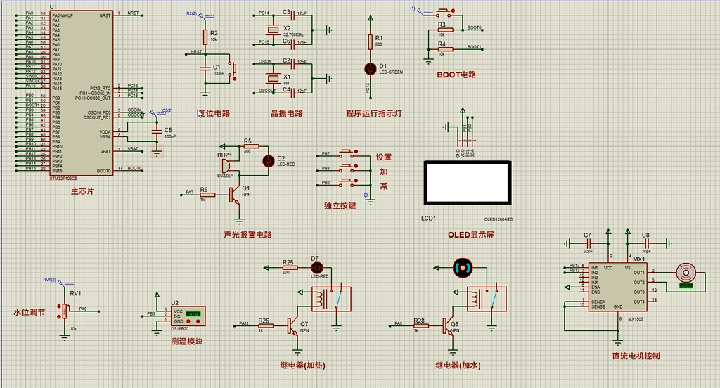 1、过程:加水——粗磨(电机慢速转动10s)——细磨(电机快速转动10s)——加热,结束后,进行声光报警3次