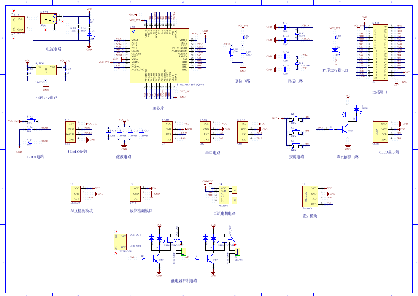 PCB图是由原理图导出,封装很大一部分都是作者自己绘制,不提供封装库,只提供连接好的源文件,可以直接在嘉立创进行打板。两层板,上下覆铜接地。