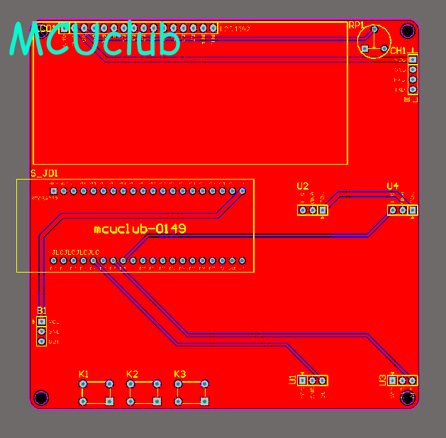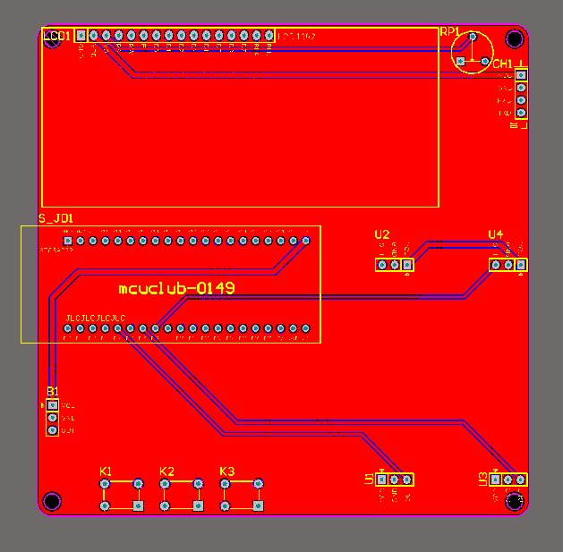 注意:PCB图中间有一个项目编号,隐藏在单片机底座下,插入单片机后不会看到。如果想截没有项目编号的PCB图,可在PCB源文件中点击删除。另外,如果想在实物PCB板上加自己的信息(比如日期、学号、姓名等),可联系客服。