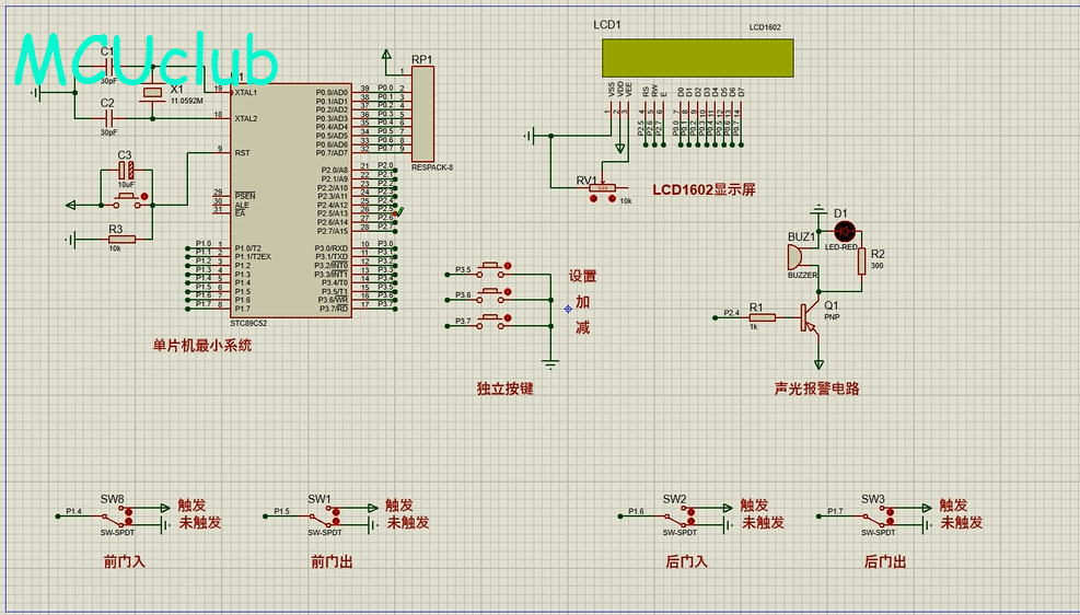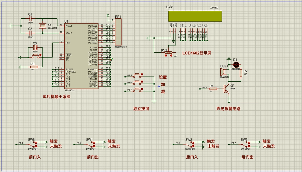 2、通过按键可设定应到人数,当按下确认键后,最终实到人数偏多或偏少都会进行声光报警,当按下清除键后,清除实到人数,取消声光报警