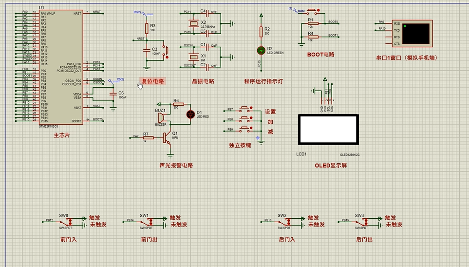 注意:部分实物元器件仿真中没有,仿真中会用其他工作原理相似的元件代替,这样可能导致实物程序和仿真程序不一样