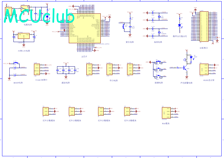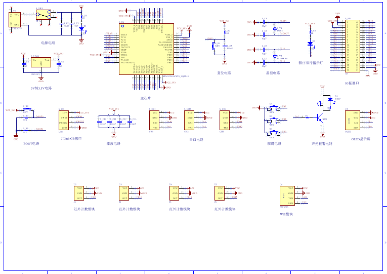 PCB图是由原理图导出,封装很大一部分都是作者自己绘制,不提供封装库,只提供连接好的源文件,可以直接在嘉立创进行打板。两层板,上下覆铜接地。