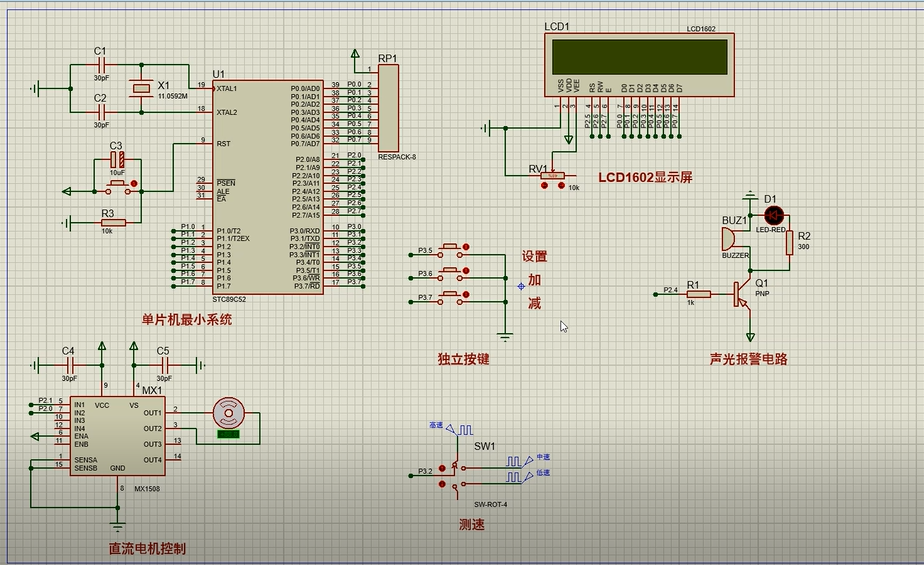 1、通过两个按键调节PWM值从而控制电机转速