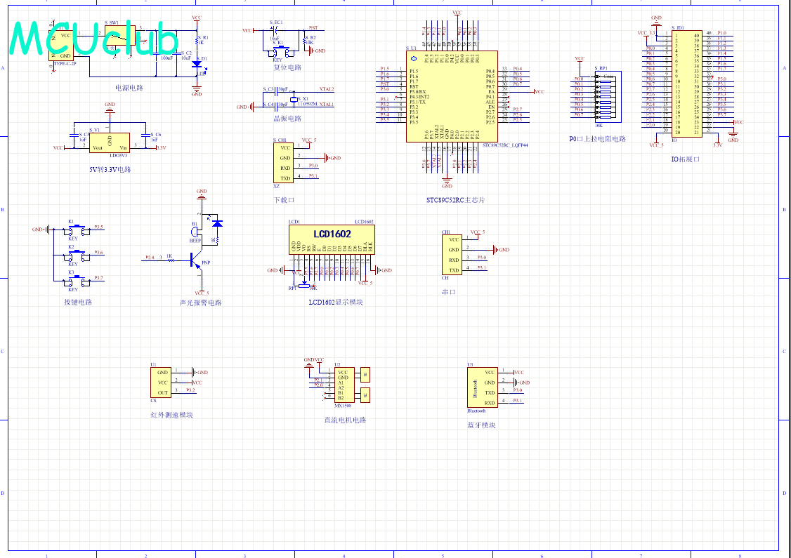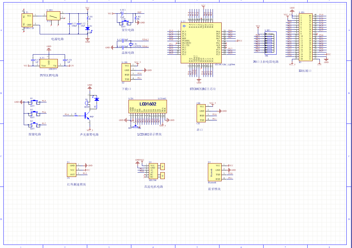 注意:原理图只是画出了模块的引脚图,而并不是模块的内部结构原理图