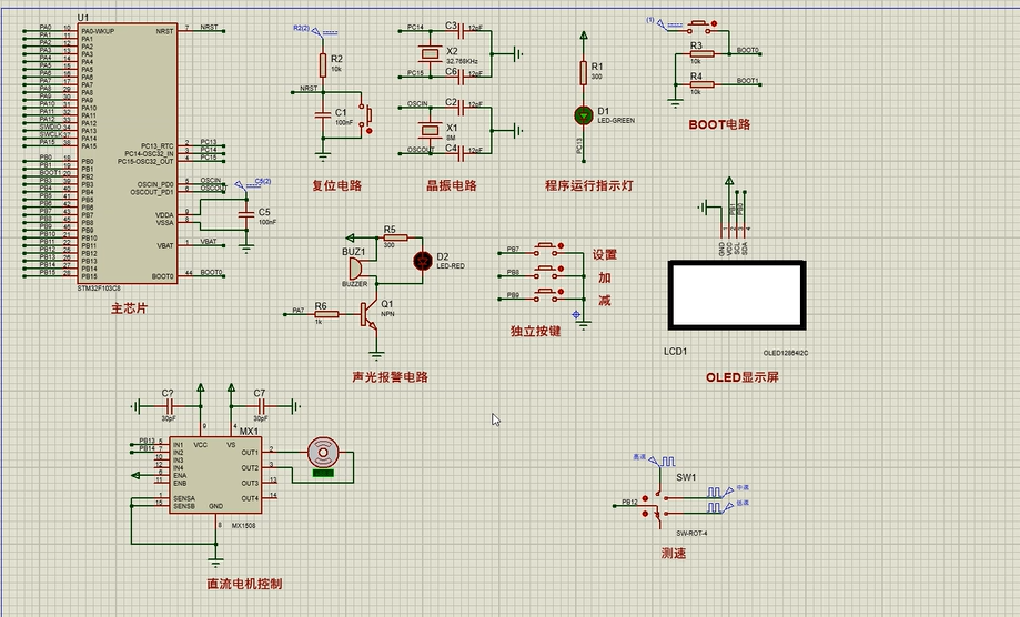 注意:部分实物元器件仿真中没有,仿真中会用其他工作原理相似的元件代替,这样可能导致实物程序和仿真程序不一样