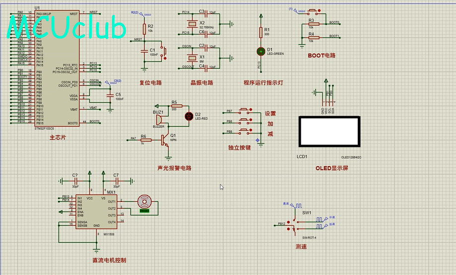2、通过霍尔模块测量速度值,当速度值大于设置最大值,进行声光报警