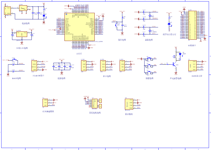 PCB图是由原理图导出,封装很大一部分都是作者自己绘制,不提供封装库,只提供连接好的源文件,可以直接在嘉立创进行打板。两层板,上下覆铜接地。