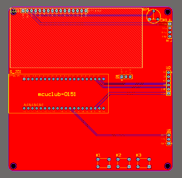 PCB图是由原理图导出,封装很大一部分都是作者自己绘制,不提供封装库,只提供连接好的源文件,可以直接在嘉立创进行打板。两层板,上下覆铜接地。