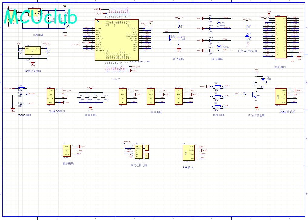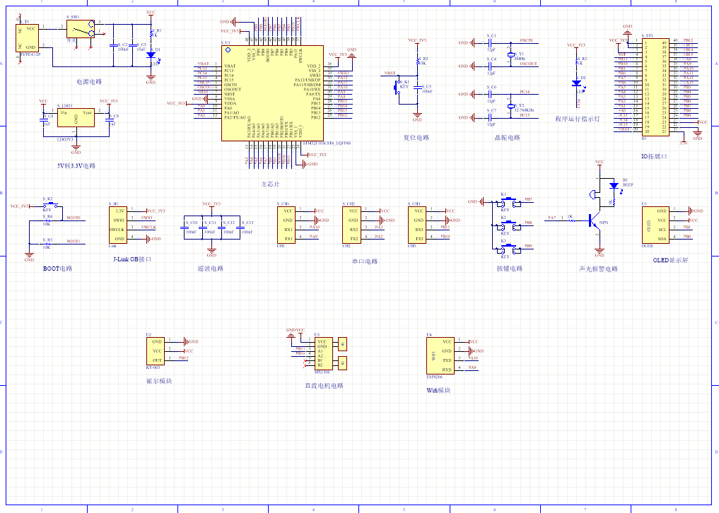 PCB图是由原理图导出,封装很大一部分都是作者自己绘制,不提供封装库,只提供连接好的源文件,可以直接在嘉立创进行打板。两层板,上下覆铜接地。