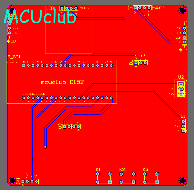 注意:PCB图中间有一个项目编号,隐藏在单片机底座下,插入单片机后不会看到。如果想截没有项目编号的PCB图,可在PCB源文件中点击删除。另外,如果想在实物PCB板上加自己的信息(比如日期、学号、姓名等),可联系客服。