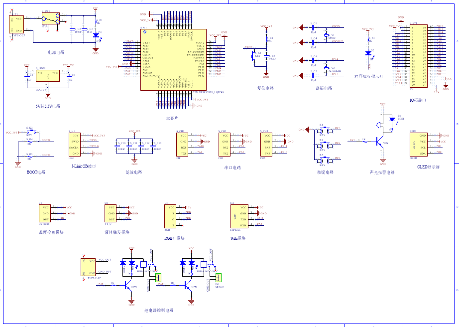 PCB图是由原理图导出,封装很大一部分都是作者自己绘制,不提供封装库,只提供连接好的源文件,可以直接在嘉立创进行打板。两层板,上下覆铜接地。