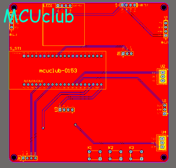 注意:PCB图中间有一个项目编号,隐藏在单片机底座下,插入单片机后不会看到。如果想截没有项目编号的PCB图,可在PCB源文件中点击删除。另外,如果想在实物PCB板上加自己的信息(比如日期、学号、姓名等),可联系客服。