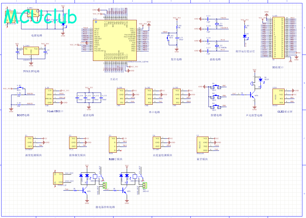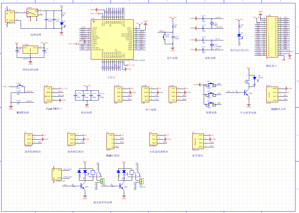 PCB图是由原理图导出,封装很大一部分都是作者自己绘制,不提供封装库,只提供连接好的源文件,可以直接在嘉立创进行打板。两层板,上下覆铜接地。