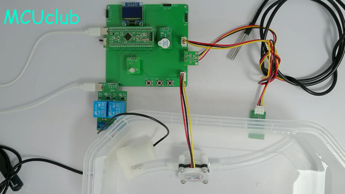 1、通过防水式DS18B20检测水温,当打开加热时,温度小于设置最小值,进行自动加热,直到加热到100℃停止