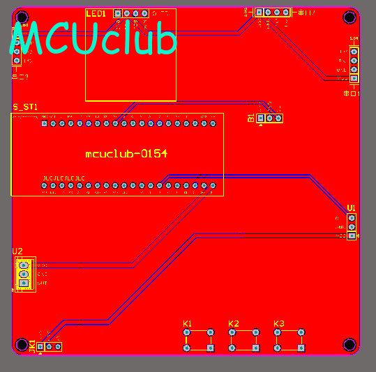 注意:PCB图中间有一个项目编号,隐藏在单片机底座下,插入单片机后不会看到。如果想截没有项目编号的PCB图,可在PCB源文件中点击删除。另外,如果想在实物PCB板上加自己的信息(比如日期、学号、姓名等),可联系客服。