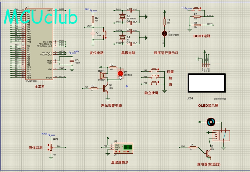 1、通过DHT11获取湿度值,当湿度值低于设置最小值,则启动加湿器加湿,大于设置最大值,则停止加湿