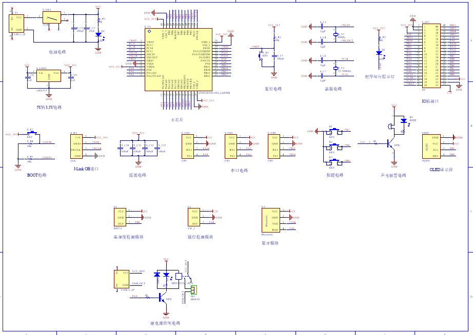 PCB图是由原理图导出,封装很大一部分都是作者自己绘制,不提供封装库,只提供连接好的源文件,可以直接在嘉立创进行打板。两层板,上下覆铜接地。