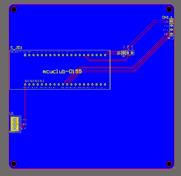 底板:底板在嘉立创进行打板,为绿色PCB板,两层板,厚度1.2,上下覆铜接地。元器件基本上为插针式,个别降压芯片会使用贴片式。
