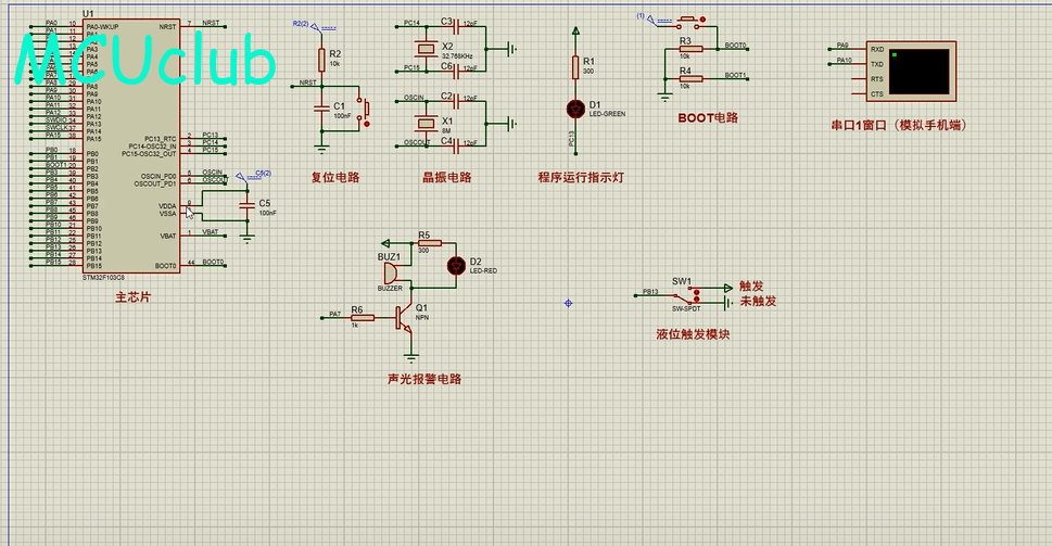 注意:部分实物元器件仿真中没有,仿真中会用其他工作原理相似的元件代替,这样可能导致实物程序和仿真程序不一样