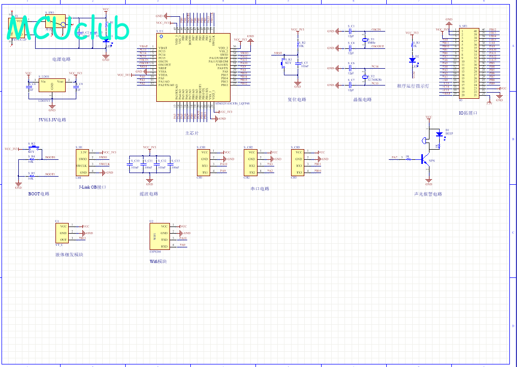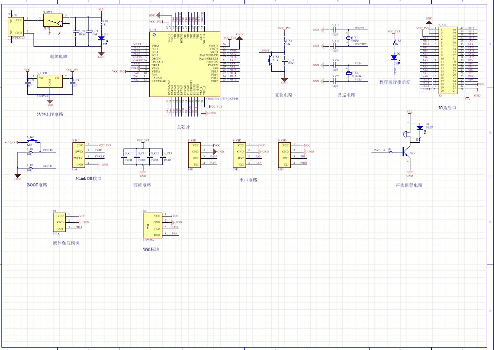 PCB图是由原理图导出,封装很大一部分都是作者自己绘制,不提供封装库,只提供连接好的源文件,可以直接在嘉立创进行打板。两层板,上下覆铜接地。