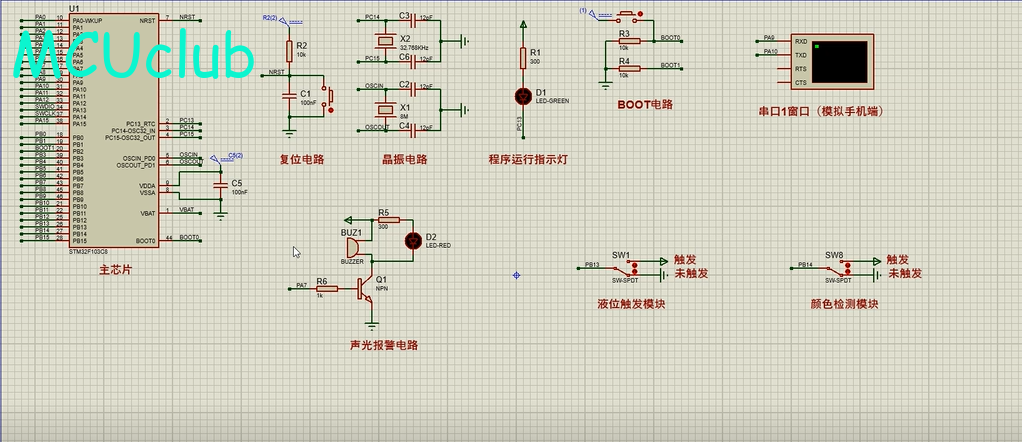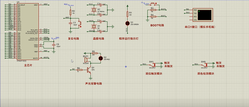 注意:部分实物元器件仿真中没有,仿真中会用其他工作原理相似的元件代替,这样可能导致实物程序和仿真程序不一样