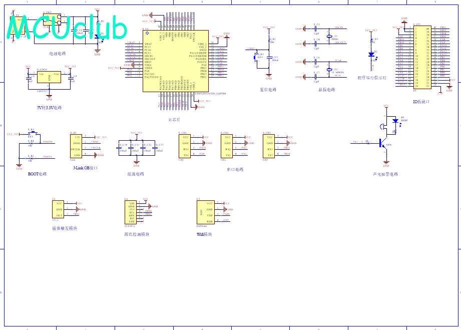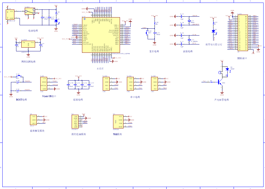 PCB图是由原理图导出,封装很大一部分都是作者自己绘制,不提供封装库,只提供连接好的源文件,可以直接在嘉立创进行打板。两层板,上下覆铜接地。