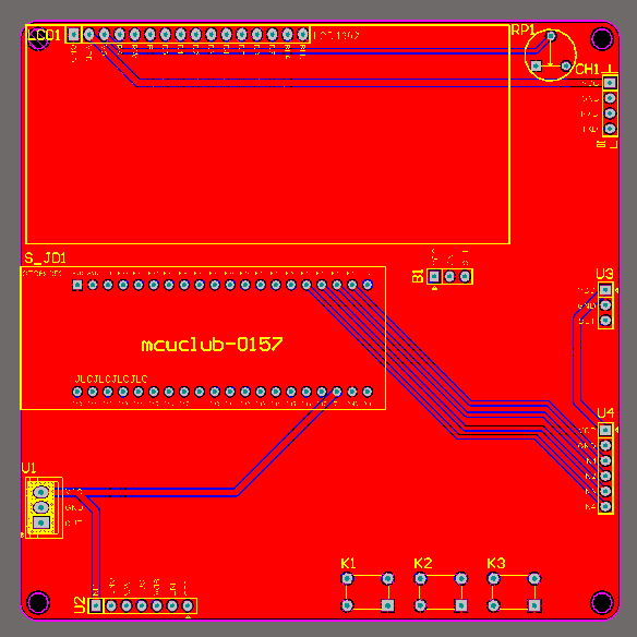 PCB图是由原理图导出,封装很大一部分都是作者自己绘制,不提供封装库,只提供连接好的源文件,可以直接在嘉立创进行打板。两层板,上下覆铜接地。