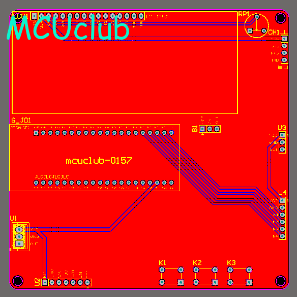 注意:PCB图中间有一个项目编号,隐藏在单片机底座下,插入单片机后不会看到。如果想截没有项目编号的PCB图,可在PCB源文件中点击删除。另外,如果想在实物PCB板上加自己的信息(比如日期、学号、姓名等),可联系客服。